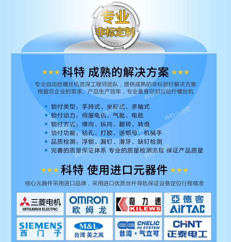 歡迎光臨科特自動化官網(wǎng),專注自動鎖螺絲機設(shè)備研發(fā)、生產(chǎn)、銷售! 關(guān)于我們| 視頻展示| 聯(lián)系我們
